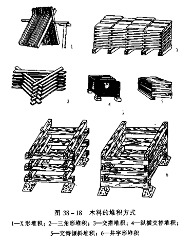 ⑦井字形堆积(图38-18-6)适用于短而小的木料,可较快的干燥。